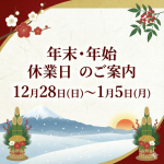 - 年末・年始休業日のご案内 12月28日(日)~1月5日(月)よいお年をお迎えください🎍